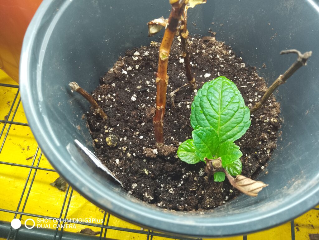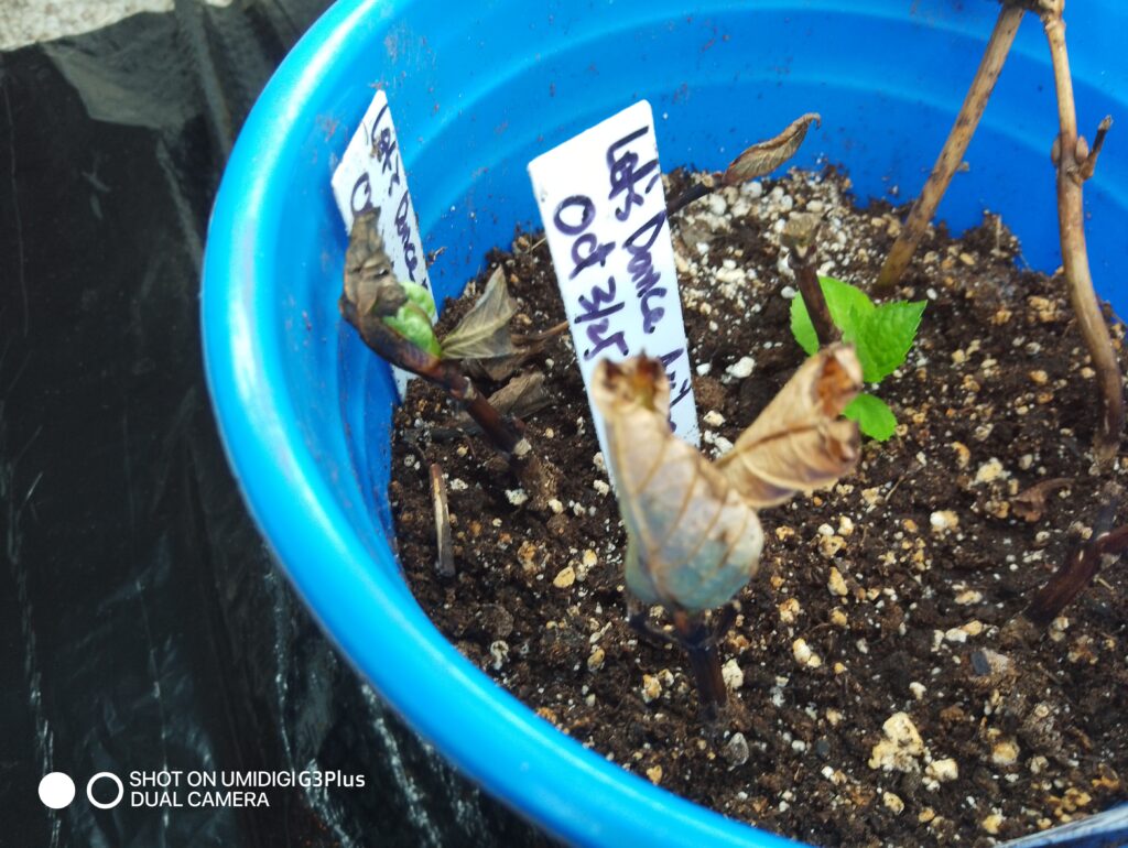 This morning, as I watered them, I noticed something small but unmistakable. On a few of the hydrangea and black sedum cuttings, tiny green leaves were beginning to show.